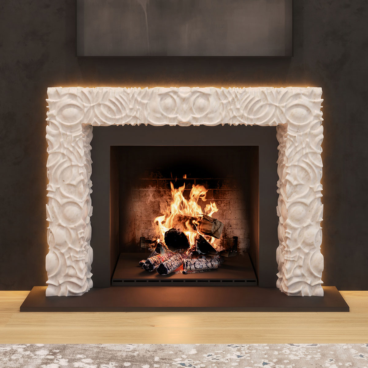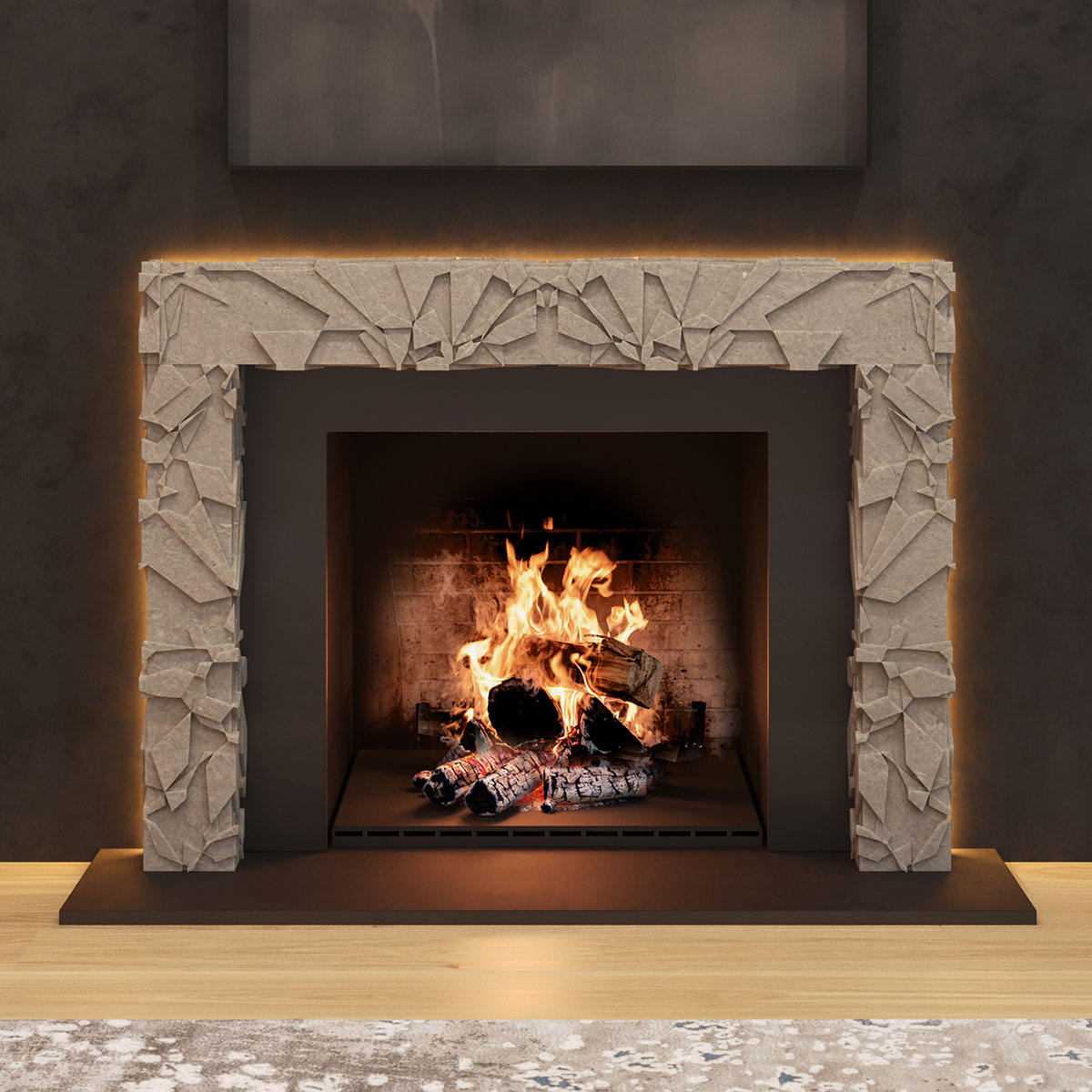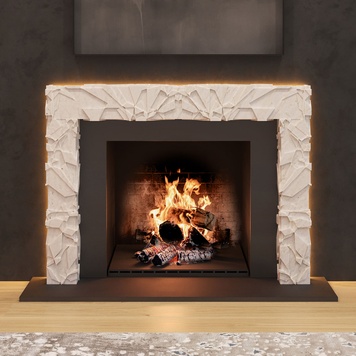 Created in collaboration with ABC Stone, the collection unites the primal and the polished and features five architecturally driven mantels that reframe the hearth’s ancient gravitas through a modern lens. Each piece elevates fire into art, honoring both its beauty and its power.