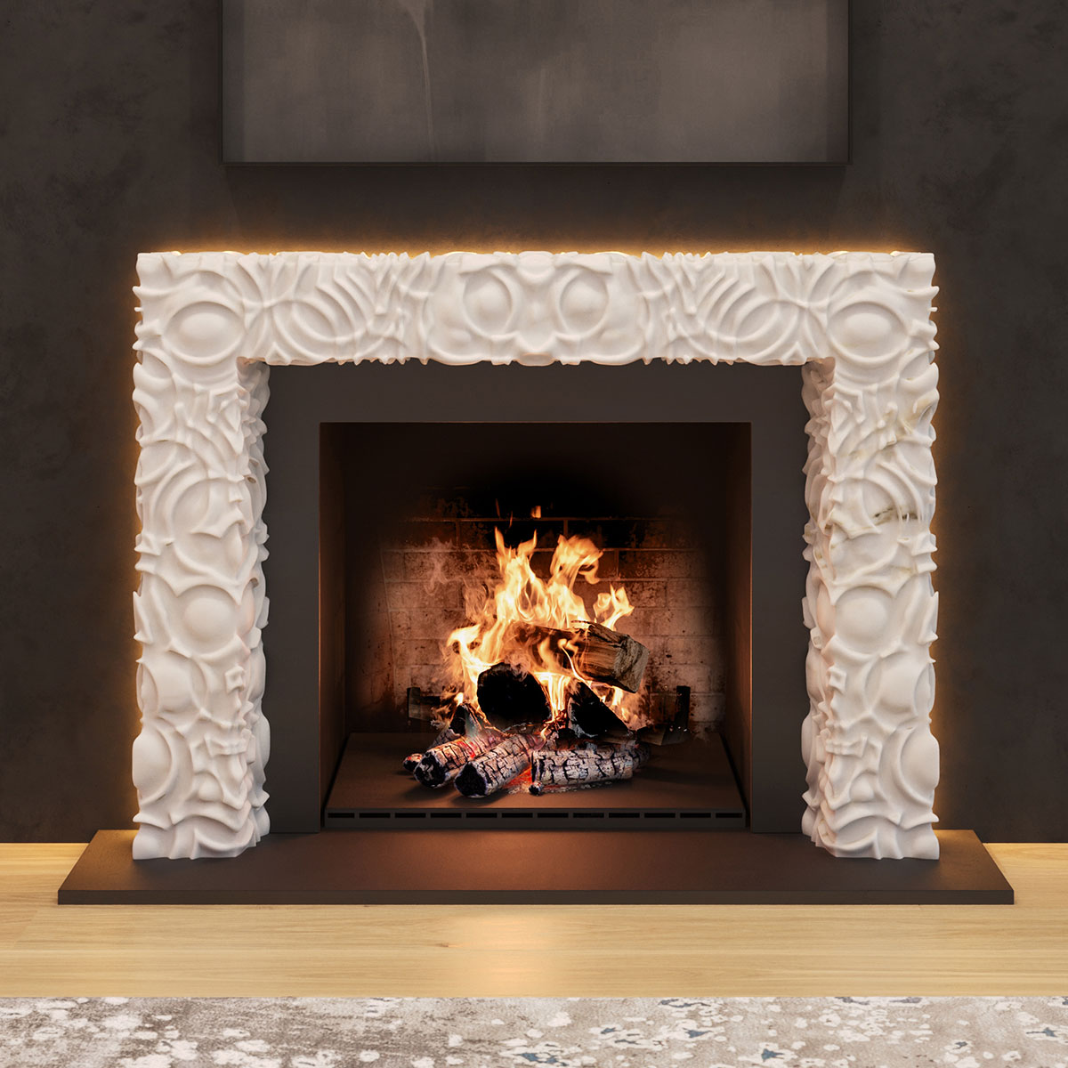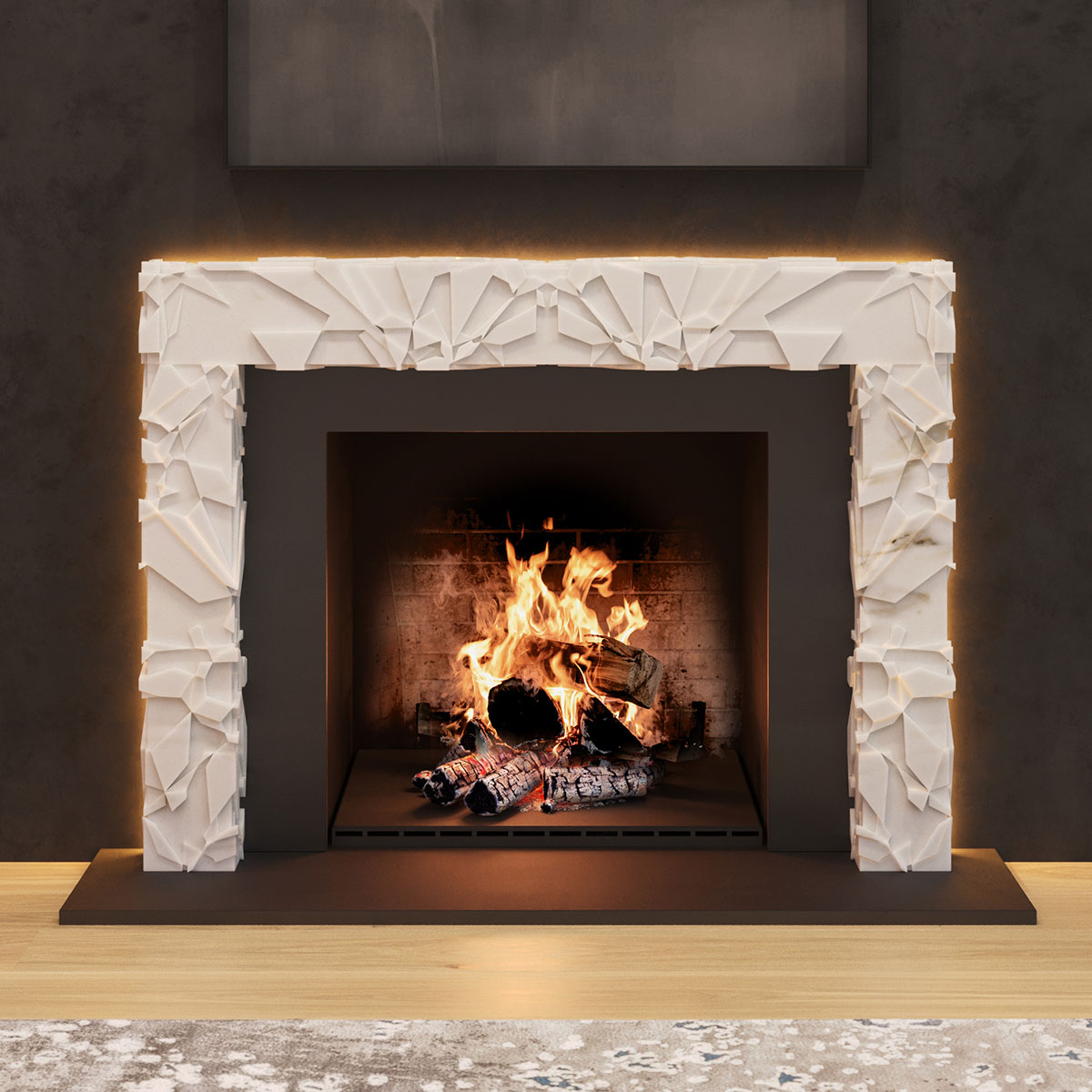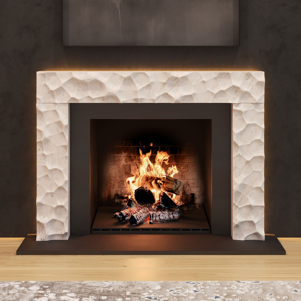 Created in collaboration with ABC Stone, the collection unites the primal and the polished and features five architecturally driven mantels that reframe the hearth’s ancient gravitas through a modern lens. Each piece elevates fire into art, honoring both its beauty and its power.