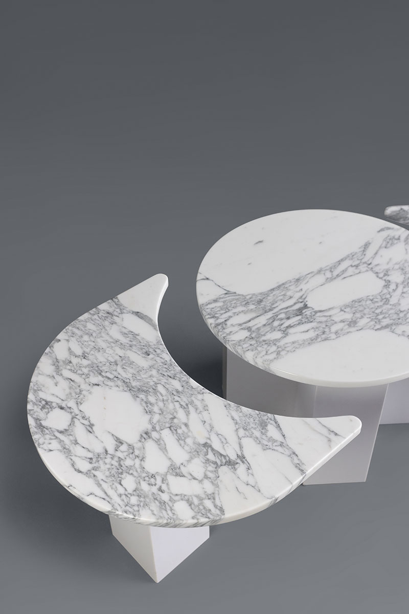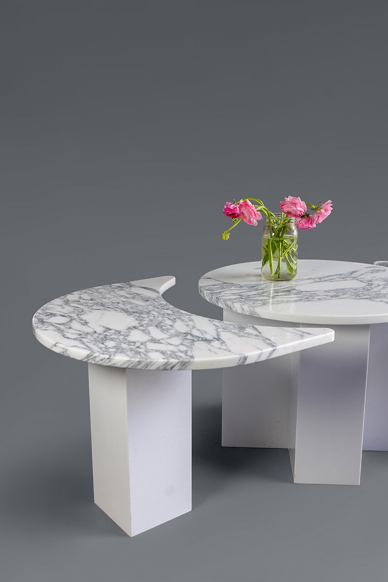 Artfully composed to reveal an elongated coffee table or an array of shapely side tables, the Flip The Script Cocktail Tables do precisely as their name suggests—you never quite know what you’re going to get.