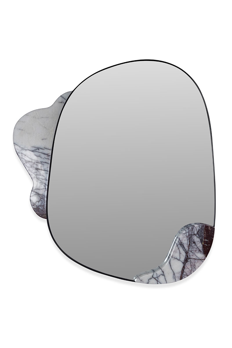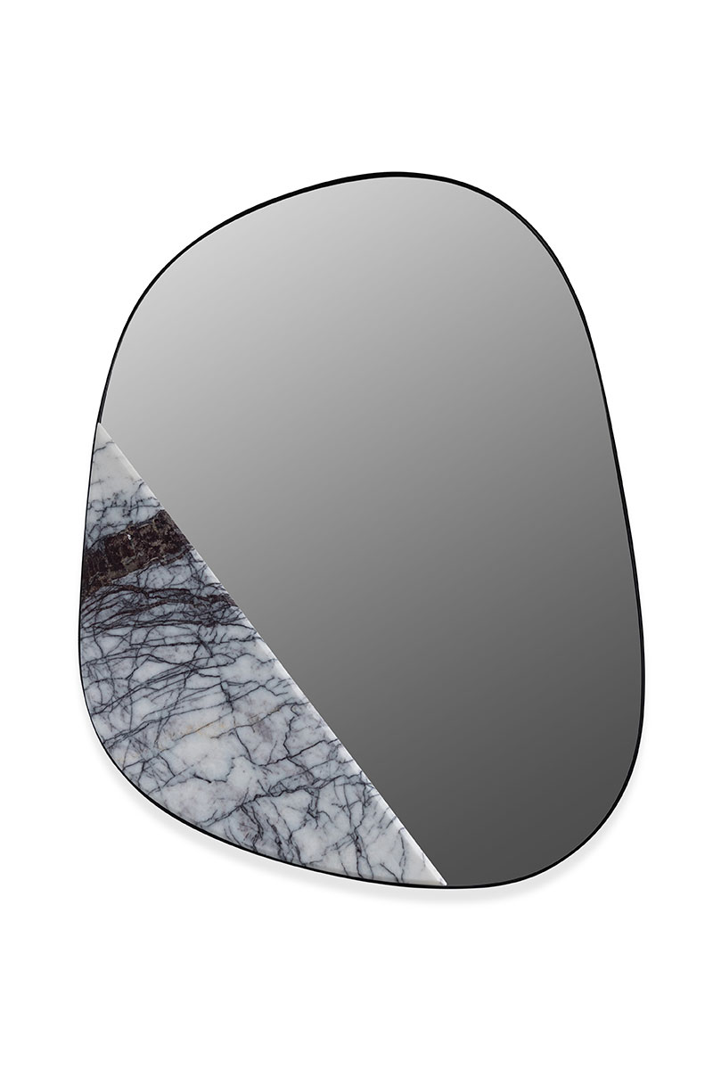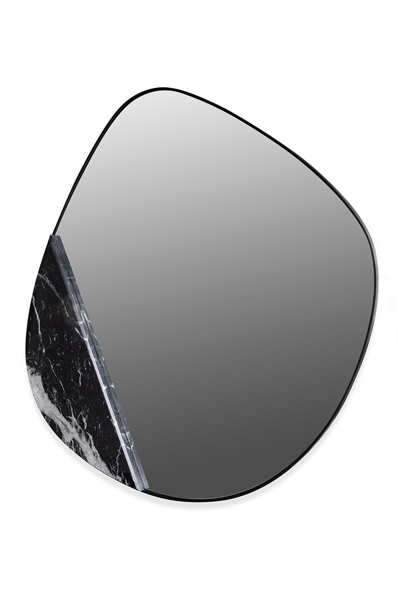 This mirror adds a little material whimsy into your next glance into the looking glass with an unexpected slice of strategically placed marble.