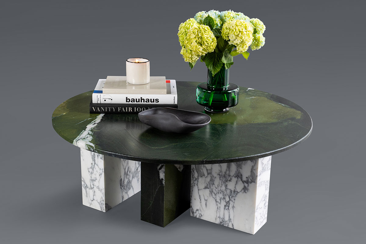 Induce some instant double-takes with the eye-catching Scene Stealer Table, whose straight-edged, two-toned base supports a stunning marble top—this piece was born to be the star of the show.